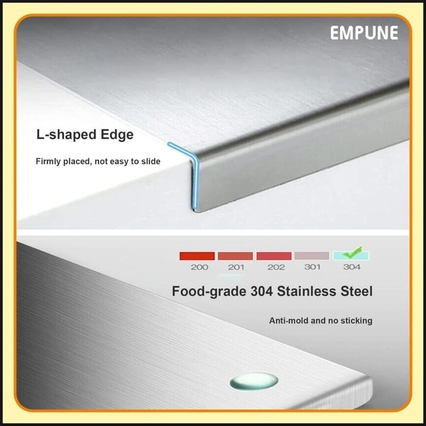 304 Stainless Steel Chopping Board with Lip for Kitchen | with 2 Steel Straw | for Cutting Vegetables, Meat,Fish,Fruits | Medium | 40 x 32 cm