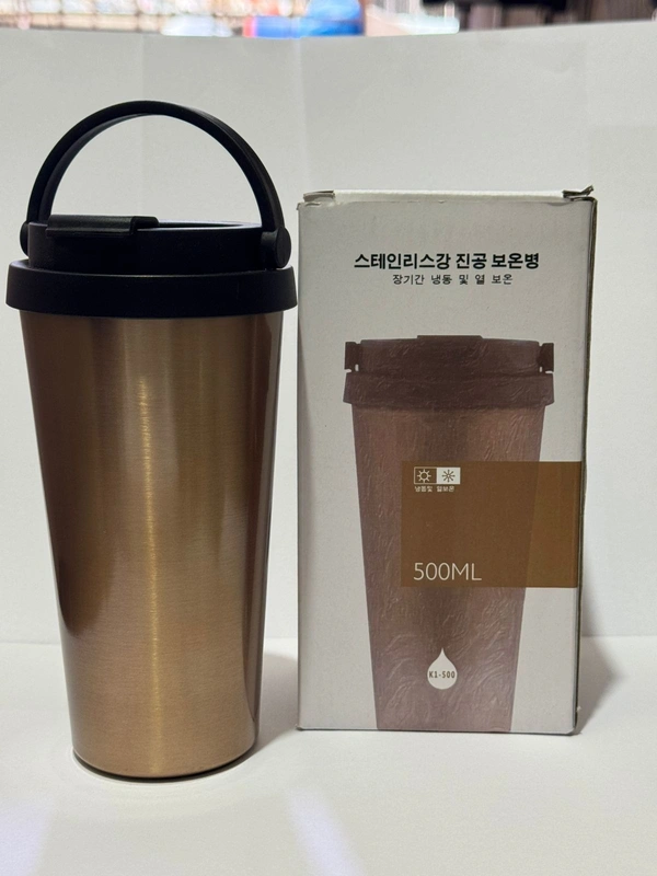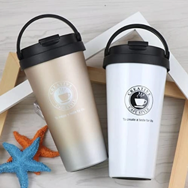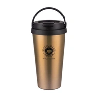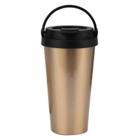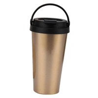 500ml Double Wall Stainless Steel Vacuum Flask Car Mugs with Handle Gold
