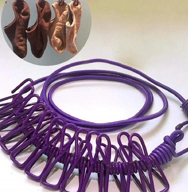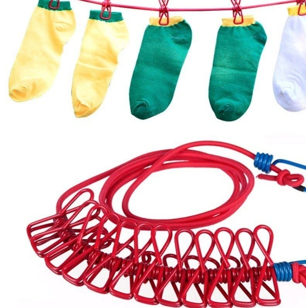 Clip Rope | Cloth Line Rope | Portable Drying Rope with 12 Clips and 2 Hooks | Drying Rope for Balcony-Garden-Terrace-Backyard-Travel-Camping |
