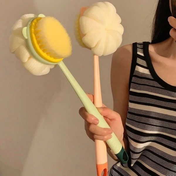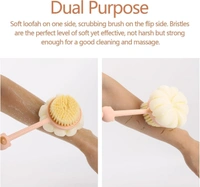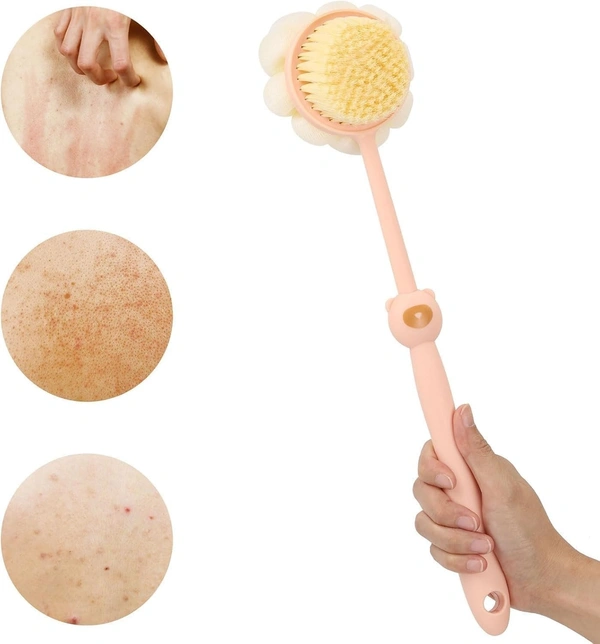 Heavy 2 IN 1 Bath Body Brush2 IN 1 Back Body Bath Brush with Bristles and Loofah Back Scrubber with Curved Long Handled for Skin Exfoliating Bath, Massage Bristles Suitable for Wet or Dry, Men and Women