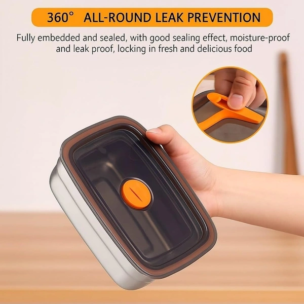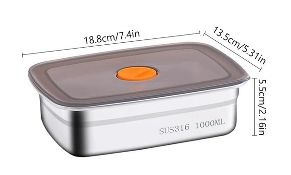 Stainless Steel Food Storage Containers With Airtight Lids Set, Stackable Leak Proof Metal Container Kitchen Storage Set, Draining Crisper Refrigerator Food Box (1000 ML), Silver