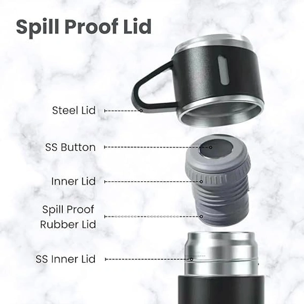 Vacuum Flask Set with 2 Cups, Double Wall Stainless Steel Thermo 500ml Vacuum Insulated Bottle Water Flask Set with 3 Cups Gift Set with Two Cups Hot & Cold (Multicolor)